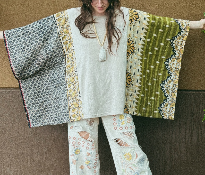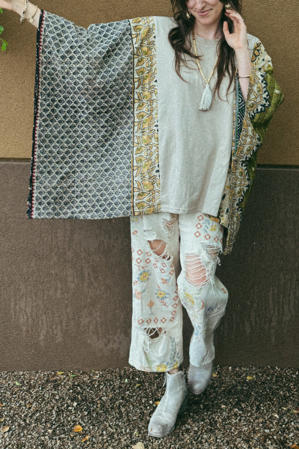 DetailsOne of a kind!Washed vintage batwing sleeve T-shirtColor: PicturedMaterial: 50% cotton, 50% recycled blendSPU: TPSY2510907Model measurementsHeight: 5'2"Chest: 34"Waist: 27"Hip: 36"